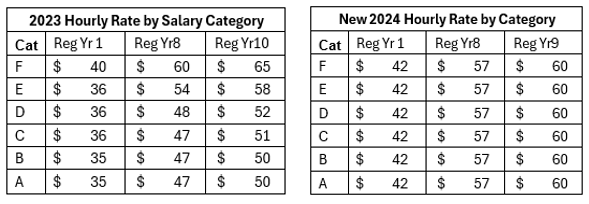 - Due to the overall cost to 'catch up' the hourly rate of the higher categories the lower categories could only be minimally increased.